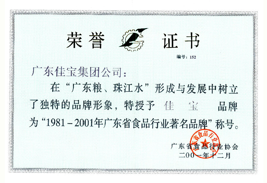 1981-2001年 佳寶牌 廣東省食品行業著名品牌